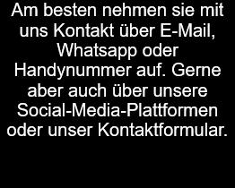 Sollten wir einmal nicht direkt erreichbar sein, schreiben Sie uns gerne eine kurze Nachricht und wir rufen Sie so schnell wie möglich zurück.